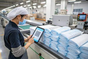 Each production batch receives unique QR codes that travel with the materials through every manufacturing stage. Workers scan these codes at each station - when fabric enters cutting, when cut pieces move to sewing, when finished masks go to quality control - creating an automated production timeline tracking system. This method eliminates manual reporting delays and provides accurate, time-stamped progress data. For clients, this means you can see exactly when your order completed each production phase, with actual timestamps rather than estimates.