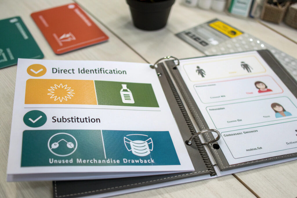 Direct identification drawback requires tracking specific imported fabric lots through to specific exported mask batches. This method offers the highest recovery rate (99% of duties paid) but demands precise lot tracking and documentation. For mask manufacturers using specialized fabrics with clear lot identification, this approach maximizes recovery but requires sophisticated inventory management systems. Our implementation for clients using this method typically recovers 98.5-99% of eligible duties.