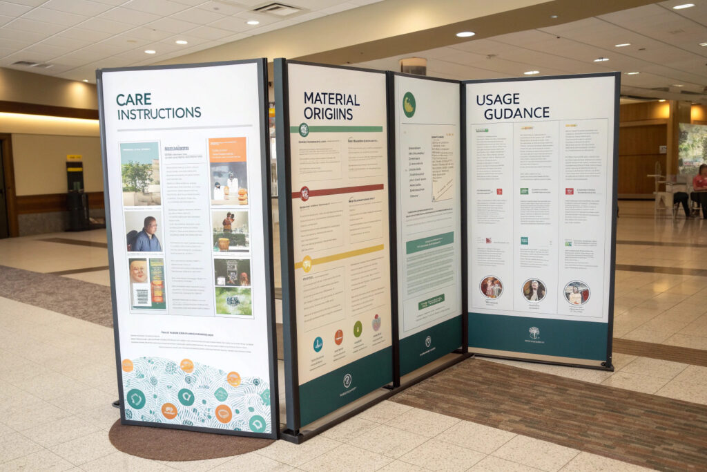 Beautifully designed informational inserts that explain fabric technologies, certifications, and performance features demonstrate expertise while avoiding clinical aesthetics. Our approach uses minimalist infographics and clean typography to present complex information like filtration efficiency, breathability metrics, and material composition in an accessible, premium format. This transparency builds trust while justifying higher price points.