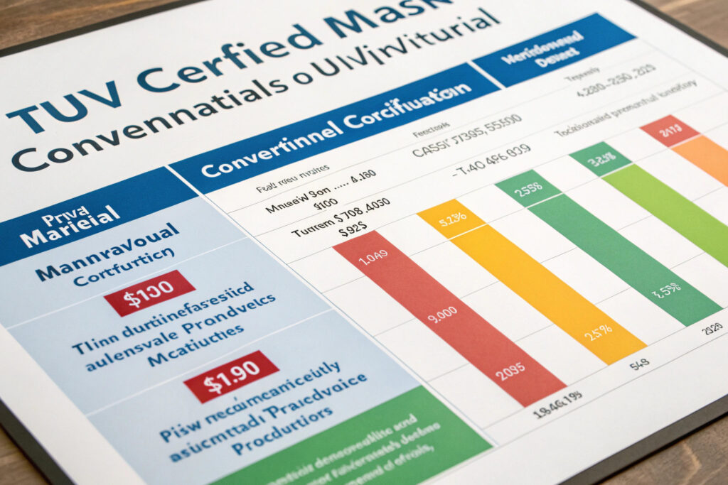 TUV-certified fabrics typically cost 40-80% more than conventional mask materials due to specialized production, certification expenses, and smaller production scales. Additionally, certified components like biodegradable elastics and nose wires can add another 20-35% to component costs. Our TUV-certified masks typically carry a 50-70% total cost premium compared to conventional equivalents, though this gap decreases at higher volumes.