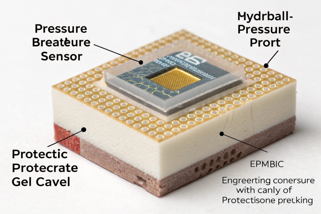 A hydrophobic, breathable membrane is the first line of defense. Materials like expanded Polytetrafluoroethylene (ePTFE), used in premium outdoor gear, allow air molecules (and thus pressure waves) to pass freely but block liquid water and particulates. This membrane covers a tiny pressure equalization port that leads to the sensor cavity. Behind this, the sensor itself should be in a pre-packaged format that provides its own seal. The best practice is to use sensors in a cavity-landed ceramic package with a gel-filled port, rather than bare die, for additional protection. The entire assembly must be tested for waterproofness (e.g., IP67) while maintaining pressure response time under 1 second.