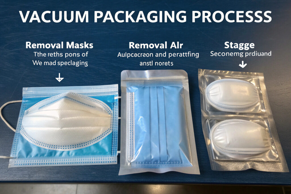 Vacuum-based systems remove air from packaging to achieve the highest possible compression ratios for fabric masks.