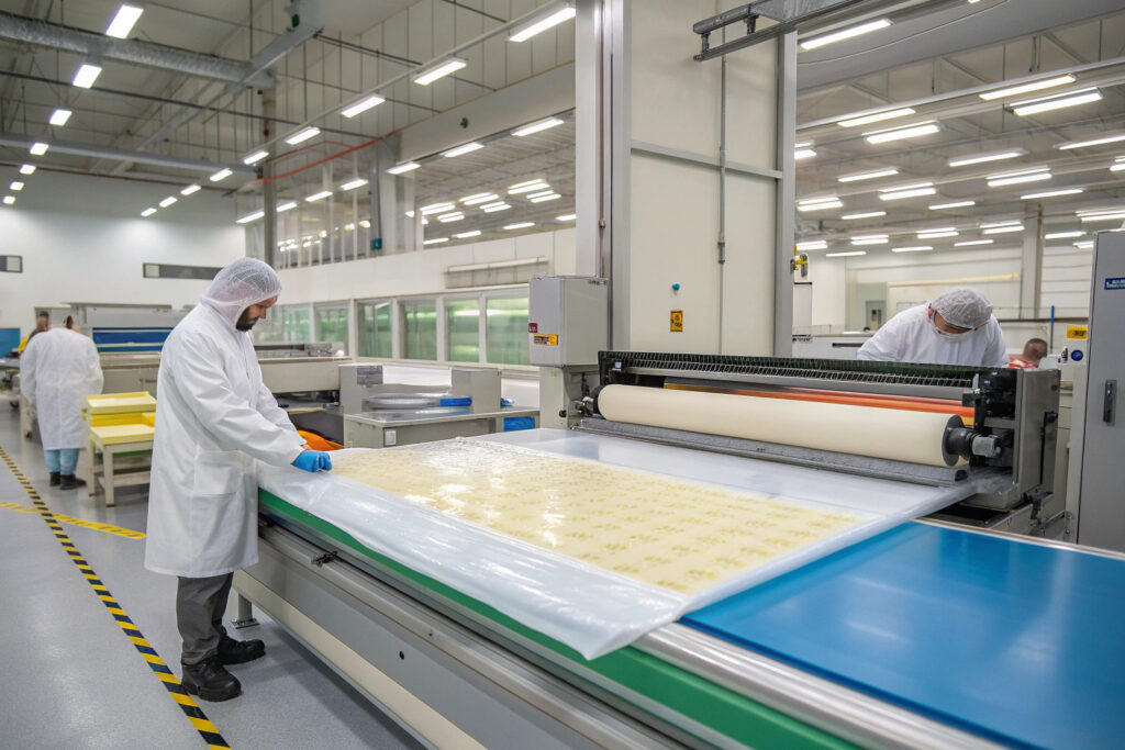 Solution casting produces hydrogel sheets with exceptional thickness uniformity (±5%) and controlled water distribution, creating consistent cooling performance across the entire contact area. This method typically involves dissolving monomers in deionized water, adding cross-linkers and initiators, then casting the solution between precisely spaced plates for thermal or UV-initiated polymerization. Research in Journal of Applied Polymer Science demonstrates that properly optimized solution casting can achieve thickness control from 0.5-5.0 mm with water content variations below 3% across production batches. Our manufacturing process uses automated casting lines with real-time thickness monitoring and adjustment, achieving production speeds of 2-4 m/min while maintaining the nanoscale pore structure (10-100 nm) crucial for controlled water release. The process creates hydrogels with tensile strengths of 0.1-0.5 MPa—sufficient for mask applications while maintaining the flexibility needed for comfortable wear.