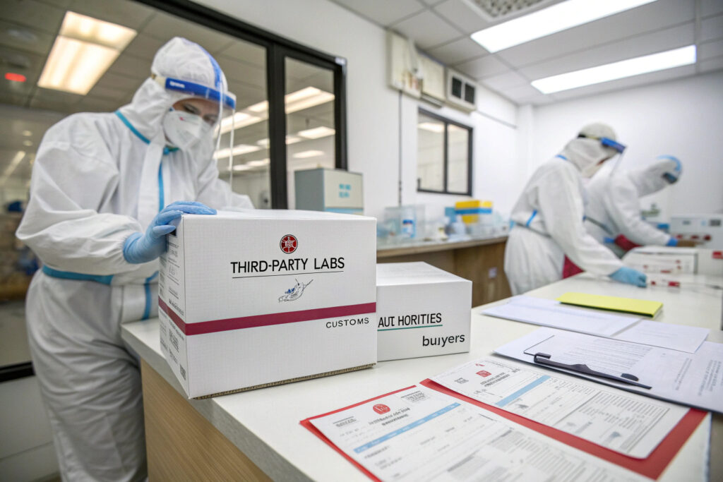 The best practice is to send masks to third-party labs. These labs provide certificates that customs authorities and buyers trust.