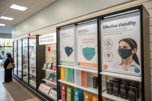 Strategic visibility elements allow products to sell themselves when consumers can't physically handle items, particularly crucial in post-pandemic retail environments.