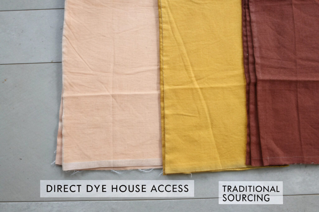 Direct oversight of the dyeing process enables quality standards that are difficult to enforce through traditional sourcing.